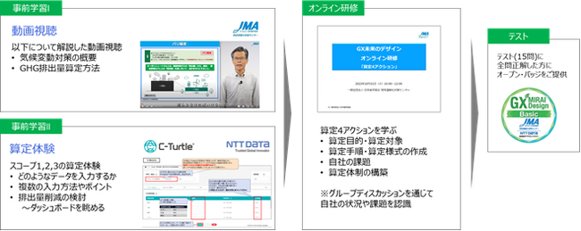 ・動画視聴、算定体験、オンライン講義により、GHG排出量の算定のポイント(どこに焦点を当てて算定を進めるのか)の理解、間違えやすいGHG算定のポイントの知識を習得することが可能