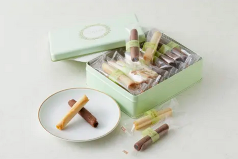 軽い口当たりのラング・ド・シャをくるっとロールした“ロールド・ラング・ド・シャ”。バニラが優しい味わいのヴァニーユと、カカオとラズベリーが香り高いショコラ・フランボワーズの詰め合わせです。