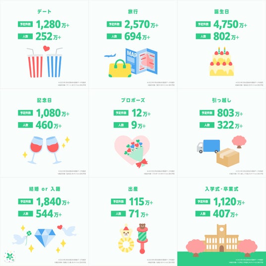 ここからは、ユーザーのみなさんがTimeTreeに登録した「大切な時間」に関する数字をご紹介します。