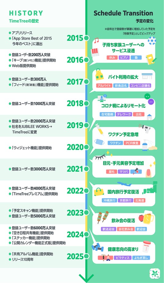 TimeTreeの歴史と予定の変化から見る世の中の10年