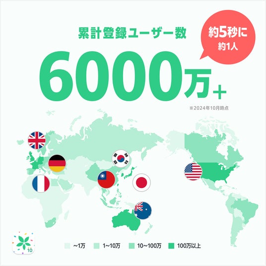 日本以外の国・地域では、アメリカ、ドイツ、台湾、イギリス、韓国、フランス、オーストラリアの順に登録ユーザーが多くなっており、200を超える世界中の国と地域で利用されています。