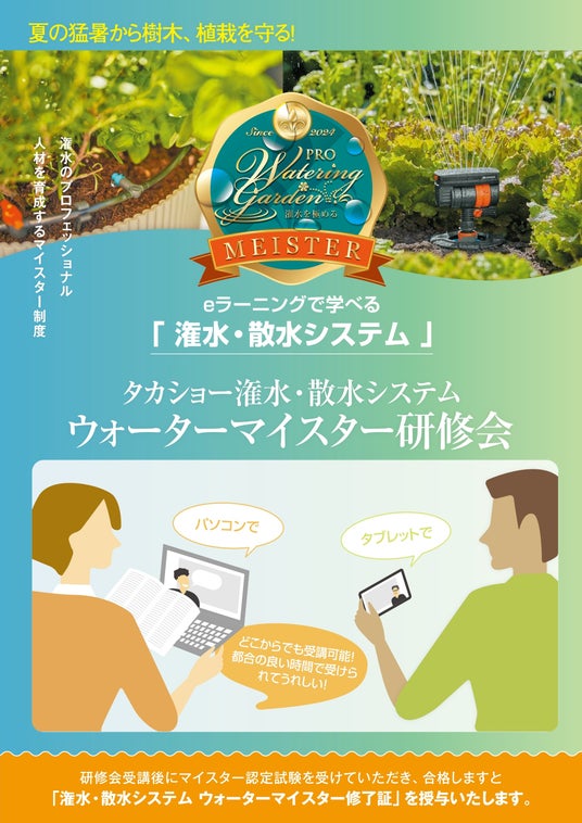 ガーデンライフスタイルメーカーである株式会社タカショー(本社:和歌山県海南市 代表取締役社長:高岡伸夫 東証スタンダード:7590)は、2024年に設立した潅水・散水技術を学ぶ専門的な研修制度『タカショー潅水・散水システム ウォーターマイスター』において、2025年4月1日(火)より、e-ラーニング形式での提供を開始します。