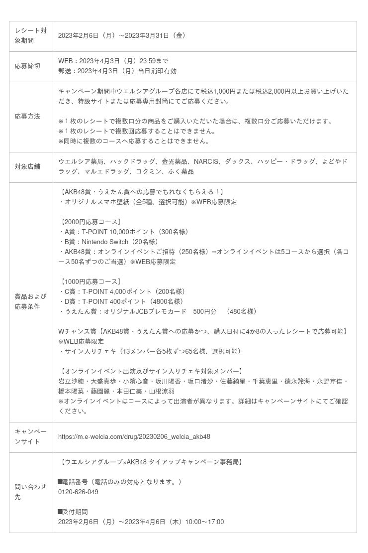 【ウエルシアグループ×AKB48タイアップキャンペーン】企画概要