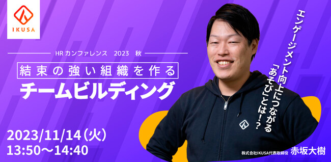 あそびで社会課題の解決を支援する株式会社IKUSA(本社:東京都豊島区、代表取締役:赤坂大樹)は、人事領域における講演会形式の大規模イベント「HRカンファレンス2023秋」に登壇します。