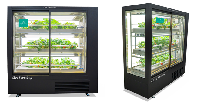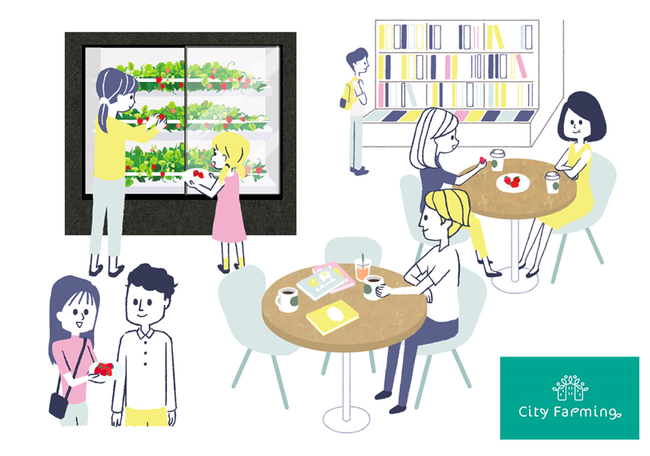 City Farming事業とは、新鮮ないちごが収穫できる小型設備を、生活空間に向けて貸出提供する新サービスです。近年ますます注目されるアグリテック「植物工場」について、更なるイノベーションを追求し、日販が事業開発、日清紡が技術開発を行いました。