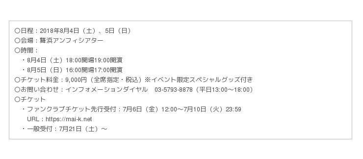 8月4日(土)、5日(日)舞浜アンフィシアターにて開催