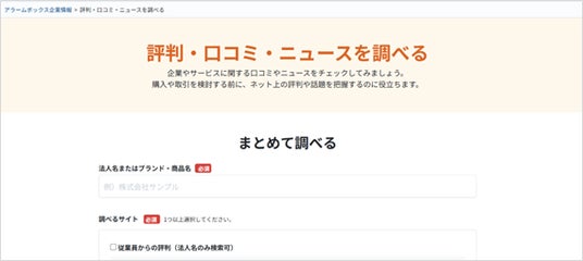 当社はあわせて、「アラームボックス企業情報」上で、企業調査による与信判断を補完する一括検索機能を提供開始します。