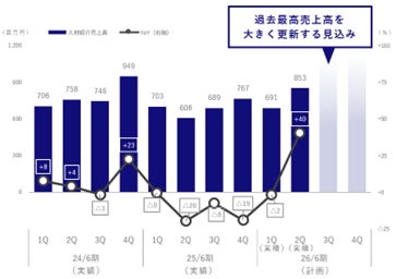 また、ハイエンド人材紹介の特性上、一般的な人材紹介に比べて内定承諾から入社までのリードタイムが相対的に長いため、現時点で第3四半期の売上高見通しは一定程度見通せています。足元の進捗状況を踏まえると、売上高は第2四半期を上回り、過去最高の四半期売上高を大きく更新する見込みです。