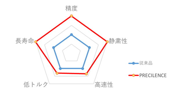 PRECILENCE(R)はPRECISION(精度)とSILENCE(静粛)を一つにした、超高精度軸受のブランド名で、