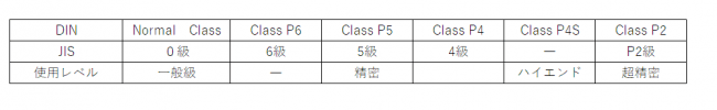 【DIN 620とJIS1514の等級比較】