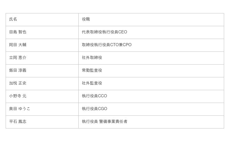 代表者 :代表取締役執行役員CEO 田島 智也