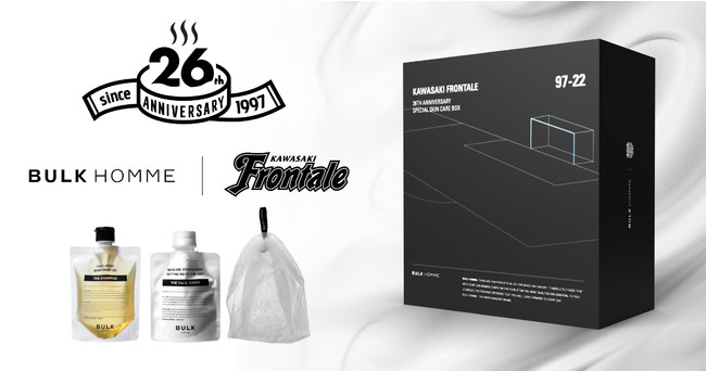 メンズスキンケアブランド「BULK HOMME」(以下、バルクオム)(運営:株式会社バルクオム、代表取締役CEO:野口 卓也)は、日本プロサッカー1部リーグ(J1リーグ)に所属する「川崎フロンターレ」のクラブ創立26周年を記念して、2022年2月25日(金)より、武蔵小杉駅北口に隣接するクラブの公式グッズショップ「AZZURRO NERO」(https://www.frontale.co.jp/access/goods_cafe.html)にてコラボラッピングを使用したスペシャルBOXを限定50個で販売いたします。