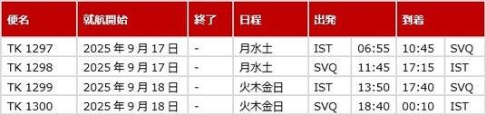本年9月17日より、イスタンブール空港とセビリア空港を結ぶ直行便が毎日運航される予定です。これにより、同地域における接続性が一層強化されるとともに、世界最多の就航国数を誇るネットワークを活かし、お客様の利便性がさらに向上します。