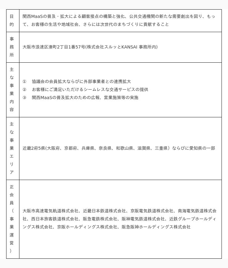 株式会社NearMe(本社:東京都中央区、代表取締役社長:高原幸一郎、以下:ニアミー)は、関西に主要路線を持つ、大阪市高速電気軌道株式会社、近鉄グループホールディングス株式会社、京阪ホールディングス株式会社、南海電気鉄道株式会社、西日本旅客鉄道株式会社、阪急電鉄株式会社、阪神電気鉄道株式会社を運営主体とする『関西MaaS協議会』に準会員として参画します。