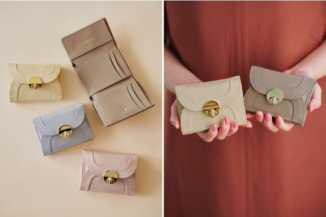 第二弾では、一粒万倍日にあわせて小柄サイズバッグにもぴったりなミニウォレットが登場。一粒万倍とは「一粒の籾(もみ)が黄金色に輝く稲穂となって一万倍になって実る」という意味で、一粒万倍日は転じて新しいことを始めるのに良いとされる開運日のこと。お財布の買い替えや新調にも最適な日とされています。