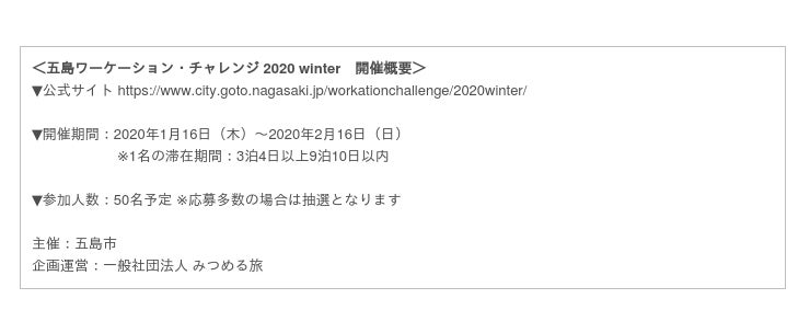 ・公式サイト:https://www.city.goto.nagasaki.jp/workationchallenge/2020winter/