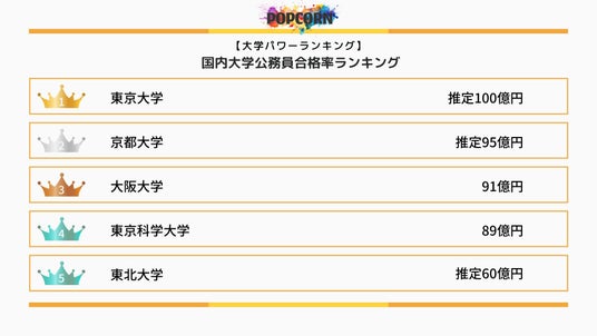 東京大学が推定100億円で首位、京都大学・大阪大学が追随