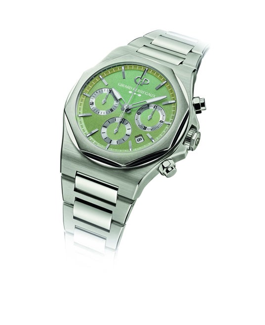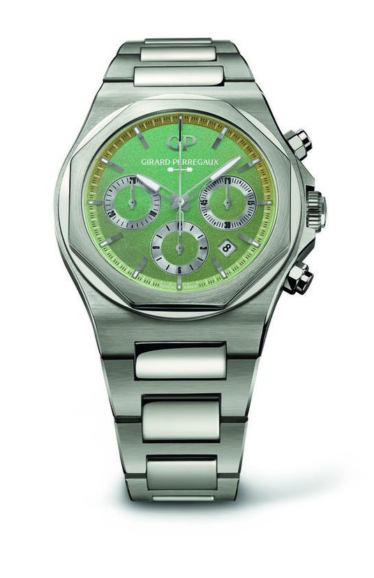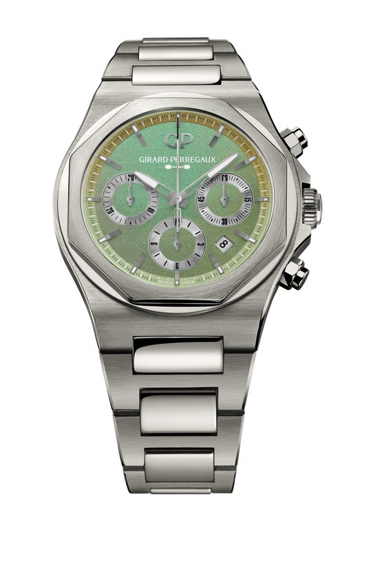 70 年代、オートオルロジュリーの代名詞とされた多くのウォッチブランドから一体型スティール製ブ レスレットを備えたステンレススティール モデルが発表されましたが、エレガントなステンレスステ ィール製ウォッチを完全に自社で製造していたマニュファクチュールはジラール・ペルゴのみでした。 ロレアートは当初から自社製ムーブメントを採用していたため、一切の妥協なく自由にウォッチをデザインすることが可能でした。ジラール・ペルゴは、ダイヤル、ケース、ムーブメントのデザインに包括的な手法を採用することでほかの時計メーカーとの差別化を図っています。これは、コンスタン・ジラールが伝説のスリー・ゴールドブリッジ トゥールビヨンを考案した 1867 年から変わらず踏襲されてきた稀な手法です。ジラール・ペルゴはアストンマーティンとの緊密な協力の下、優れたパフォーマンスを発揮し、レースをするために生まれた、このロレアートの現代的なバージョンを作り上げました。 ロレアート クロノグラフ アストンマーティン エディションは、2025年2月19日より、世界中で発売されます