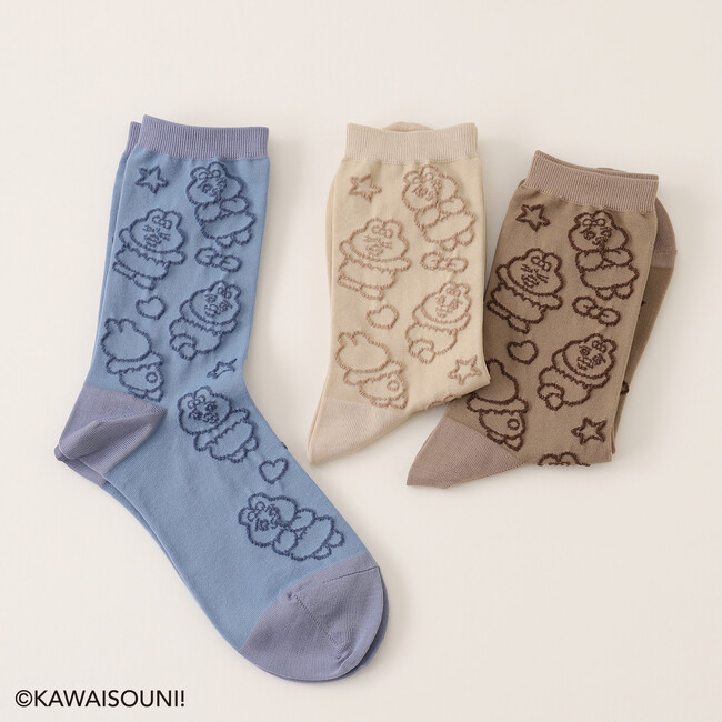 お顔部分にふわふわのモール糸を使用したポップな総柄ソックス。