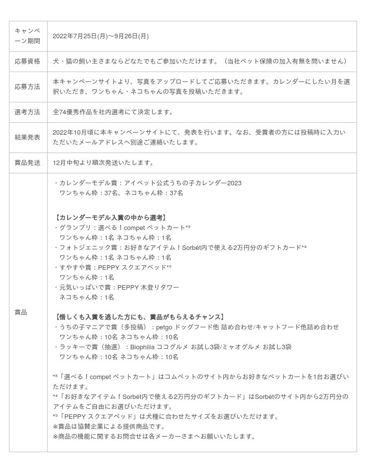 ※詳細は、「うちの子フォトコンテスト2022」キャンペーンサイトでご確認ください。