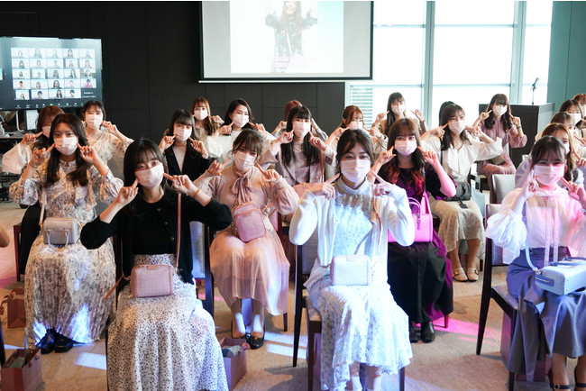 今年、新たにサマンサタバサグループに加わる新入社員へ向けて、会場ではサマンサタバサ契約モデルからの祝福ビデオメッセージが流されました。