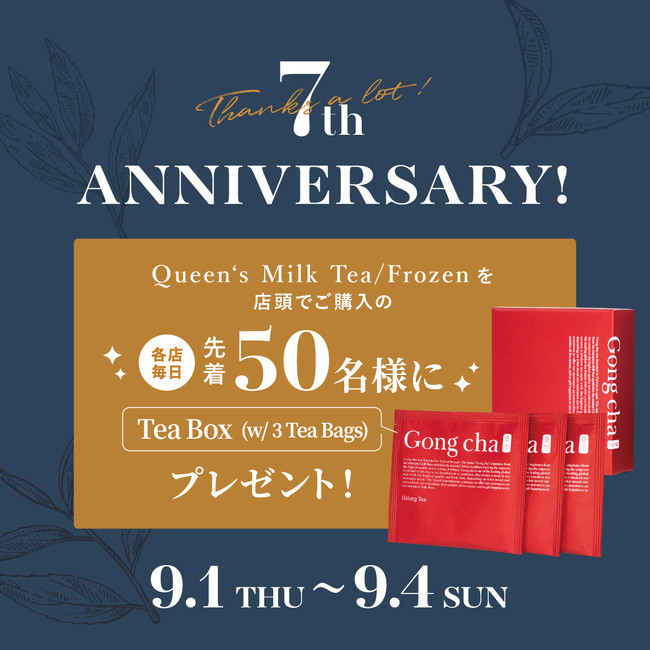 Gong cha 日本上陸7周年を記念して、「Queen’s Milk Tea」または「Queen’s Frozen Tea」をご購入のお客さまに、感謝を込めてプレゼントをご用意いたしました。
