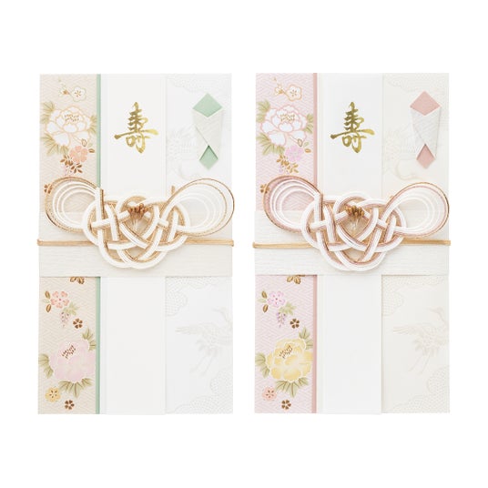 価格:693円(税込)/種類:2種(白・桃)/製品寸法:105×185mm/内容:本体1枚、短冊2枚(壽・無地)、中袋1枚/製品紹介ページ:https://paper.maruai.co.jp/shop/c/c01039919/