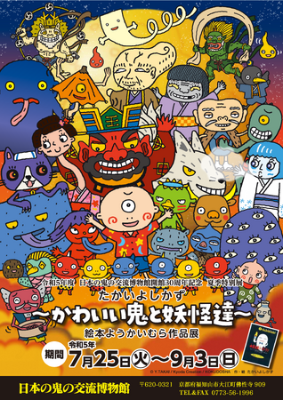 鬼伝説の舞台として知られる、京都府福知山市の“鬼の聖地”大江山の麓に建つ日本の鬼の交流博物館は、開館30周年記念の夏季特別展として、「たかいよしかず~かわいい鬼と妖怪達~絵本ようかいむら作品展」を2023年7月25日から9月3日まで開催します。