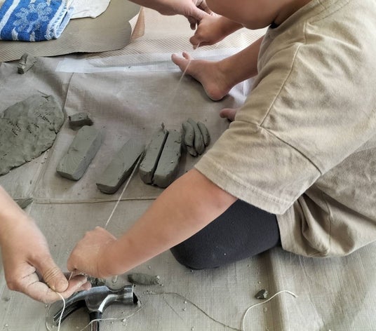 砂でもない、油粘土でもない、土粘土ならではのなめらかさや、削った時の感触、水と合わせた時の変化など、普段家では体験できない遊びを、親子で自由に楽しんでいただけます。遊び以外にも、北欧デンマークの森のようちえんのお話や、答えのない遊びが子どもの成長にどう繋がっていくかなど、学びも多いイベントです♪