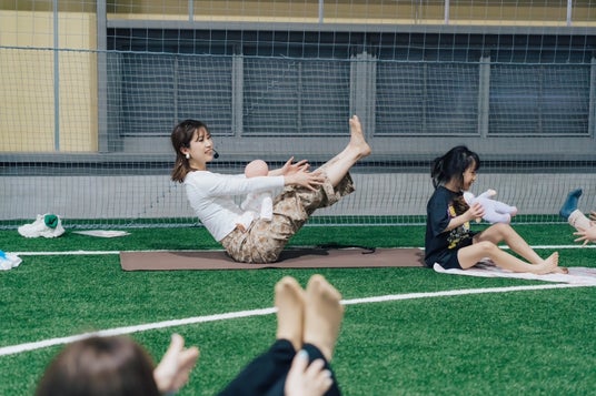ママ・パパと赤ちゃんが一緒にヨガを体験♪赤ちゃんと呼吸を合わせてポーズをとり、