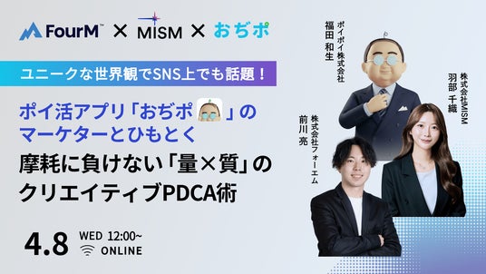 AnyMind Group株式会社のグループ会社である株式会社フォーエムは、2026年4月8日(水) 12:00より、オンラインウェビナー「獲得効率と継続率は両立できるか?「おぢポ」のマーケターとひもとく、摩耗に負けない「量×質」のクリエイティブPDCA術」を開催いたします。