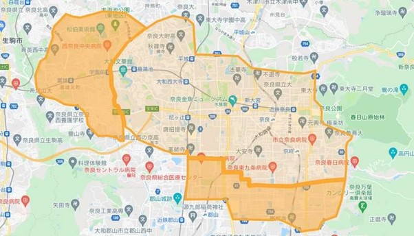 奈良市内 帯解駅北部(京終南部、東九条)、学園前西部、富雄エリア
