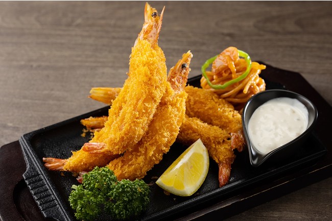 プリプリの食感がたまらない人気の海老フライを丸ごと一尾でご提供。お好みでタルタルソースとともにお召し上がりいただけます。