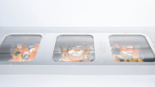 真空包装機は、専用の袋に入れた食品をセットすると、袋の中の空気を抜いて真空状態にし、袋の開口辺をシール(密封)して包装する製品です。腐敗の原因となる細菌類の多くが繁殖に必要とする酸素に食品を触れさせないことで保存性を高めます。同時に、水分の蒸発を防ぎます。真空にする際に食材内の空気が抜け、そこに調味料が浸透するので、短時間に少量の調味料で味が染み込みます。真空包装は冷凍保存にも利用されています。