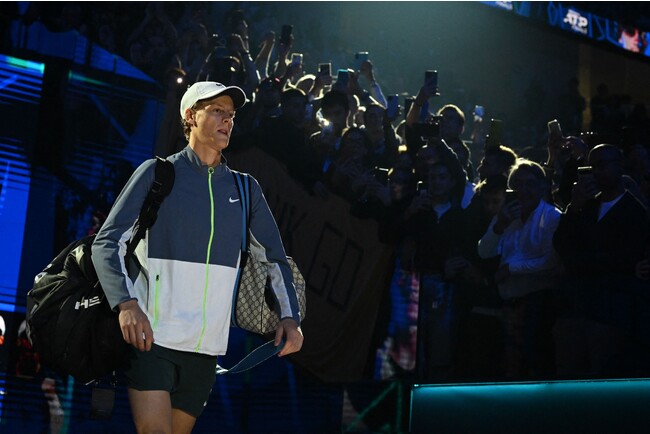 グッチのブランドアンバサダーであり、世界ランキング4位のプロテニス プレイヤー ヤニック・シナーが、11月12日、イタリアのトリノで開催されているNitto ATPファイナルズ2023に、カスタムメイドによるグッチの新しいダッフルバッグを携えて出場しました。