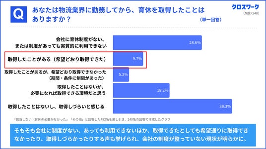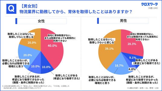 - 背景に、制度の不備や利用しづらい現状、取得できても期間や制限があることなどが挙げられ、物流業界における子育てとの両立支援体制の課題が浮き彫りに