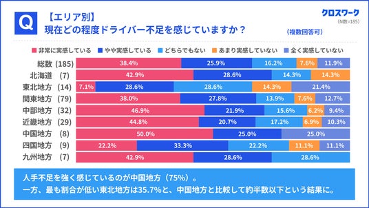 1)6割超の事業者がドライバー不足に苦悩。中継地点となる物流網を有するエリアで深刻な人手不足