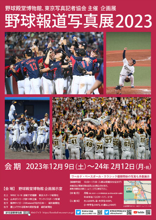 野球殿堂博物館では、東京写真記者協会との共催で、企画展「野球報道写真展 2023」を開催します。本企画展は 2015 年にスタートし、今回 9 回目の開催となります。