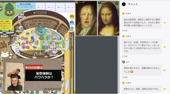 ○司会はアバター 顔を出さずにチャットでコメントなので対面より意見が言いやすかったようです。