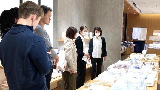 今年は、21ヵ国から様々なキャリアを持つ43名の学生が来日され、弊社には5名の学生が訪れました。弊社の歴史、モノづくりに対する想いや背景を紹介しながら、ショールームと店舗の視察、また協業先の企業様のご協力のもとUCHINOとのコラボ商品についてのインタビューも交え、多角的な視点で課題や戦略などをディスカッションしました。研修最終日には”グローバルビジネスにおけるエコシステムの構築”をテーマに、学生それぞれの知見と市場環境の分析を踏まえ、想像を超える素晴らしいプレゼンテーションをしていただきました。