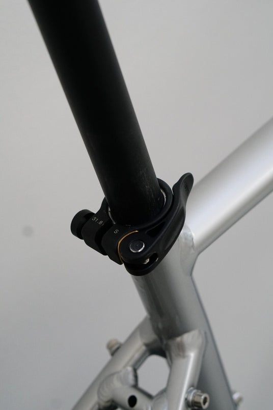 シートポストはスタンダードなΦ27.2mm。また、シートクランプをクイック式にして手軽にポジションを変えられます。なお、シートチューブ外径はφ31.8mmであり、一般的なシートクランプに交換も可能となっています。