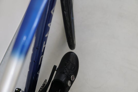 また、ロードバイク初心者でも不安がないよう、ハンドルを切った時につま先と前輪が干渉しないようにトークリアランスを確保しつつも、ステムが短くなることでハンドリングがクイックになってしまうのを防ぐジオメトリになっています。