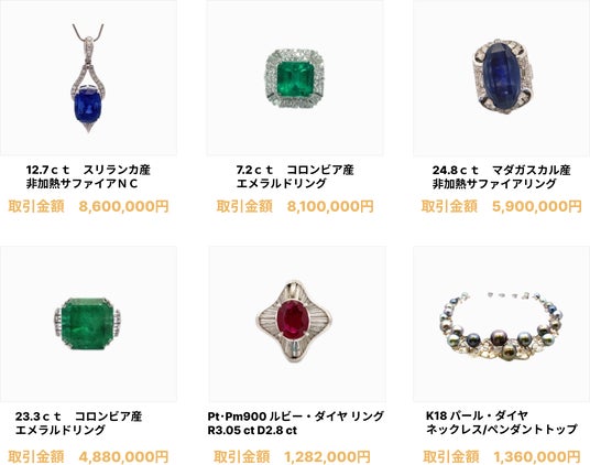 色石も人気なカテゴリとなっており、サファイア、エメラルド、ルビーなど数多くの入札がありました。