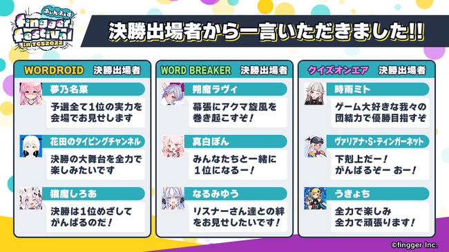 今後も特設サイトやfinggerのお知らせ、fingger公式Twitter等にて、出展内容や関連した情報を発信してまいりますので、ぜひご注目ください。