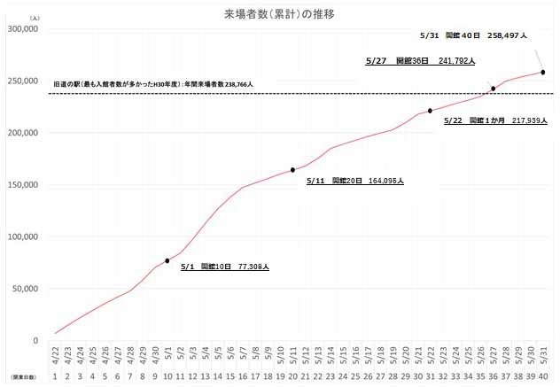 来場者数は、休憩・情報発信施設(トイレや休憩スペースがある国道側の施設)及び