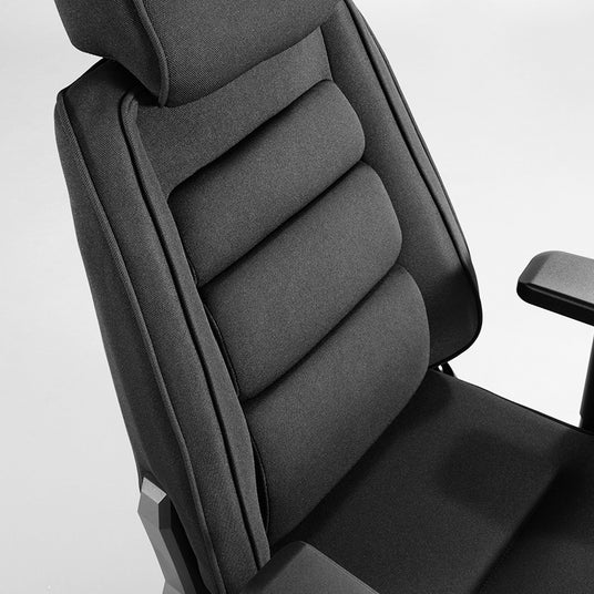 また、背面に備えられた3つのクッションが耐圧を分散し、腰・背中にかかる負担も軽減。"戦う"姿勢のみならず休息時間もサポートする仕様です。