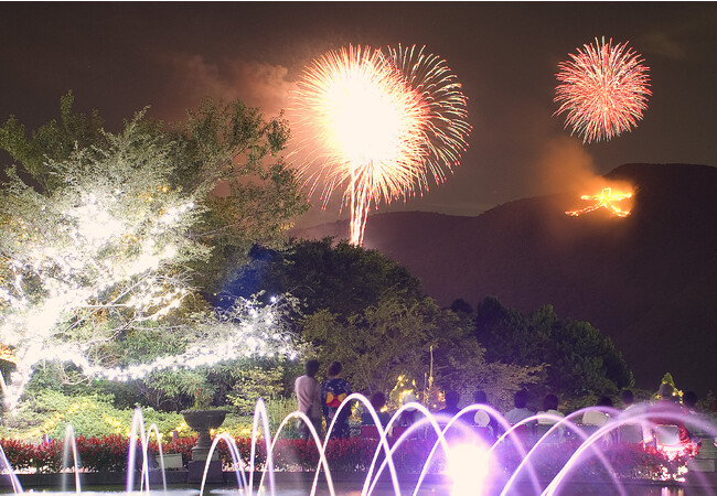 cu―mo 箱根の展望テラスでは、有料観覧エリアを新設するほか、cu―mo ショップではサッポ ロビール株式会社が1日限定で「白穂乃香」を特別販売します。また、箱根強羅公園では営業時間を延長し無料観覧席を設け、大文字焼と納涼花火を存分に楽しむことができます。