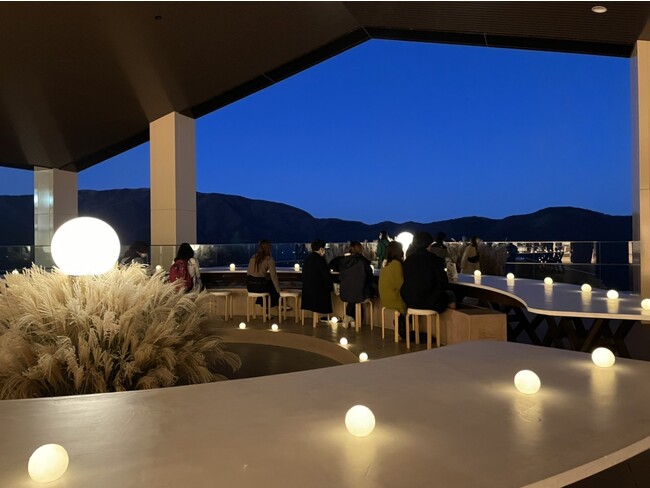 3.展望テラス有料観覧席の設置 展望テラスにおいては、ワンドリンクと cu―mo セレクトグッズ付の有料観覧席(2名1組 合計24名)を設けます。