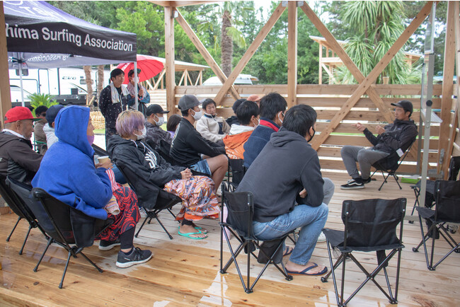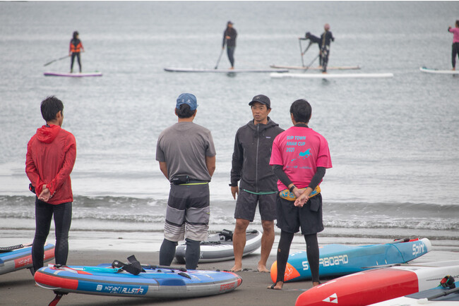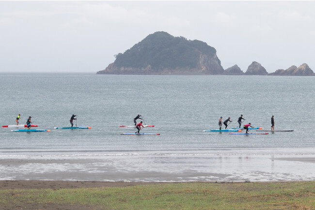 徳島県阿南市淡島海岸にて、トップアスリートによるSUP講習会「SUPクリニック2022 in 四国の右下」を開催しました。当日は、世界を舞台に活躍している金子ケニー氏、馬場なつみ氏を講師としてお招きし、パドルの持ち方や漕ぎ方、操作の仕方(パドルクリニック)など基礎講習をはじめ、実際に海上に出て実技指導が行われるなど、参加者の皆様には学びながら「四国の右下」でのサップを楽しんでいただきました。