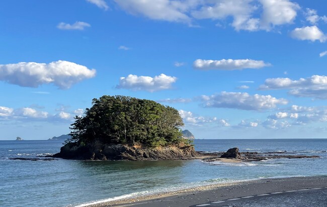 牟岐町にある「松ヶ磯」は四国八十八景に選定されており、潮が満ちているときは海の中に島が浮かんでおり、潮が引くと陸続きと、刻々と変化する潮の満ち引きによって見える景色が大きく変わります。